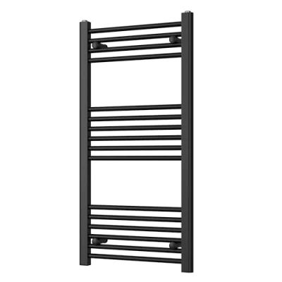 Heated Straight Black Towel Rail For Luxurious Bathrooms Efficient Warmer & Storage Rack Bathroom Radiator with Stylish Holder Easy Installation H1000mm x W500mm