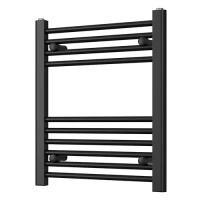 Heated Straight Black Towel Rail For Luxurious Bathrooms Efficient Warmer & Storage Rack Bathroom Radiator with Stylish Holder Easy Installation H600mm x W500mm