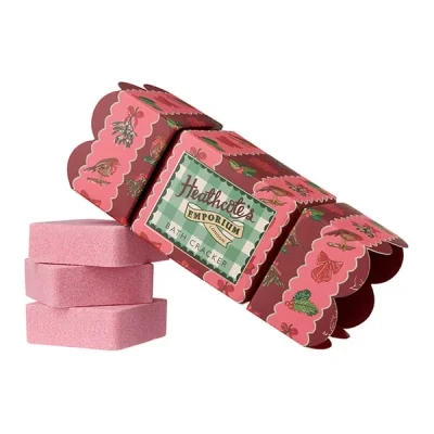 Bring fragrance and fizz to your Christmas gifting with the vibrant Heathcote's Emporium Bath Fizzers Cracker Set, filled with three pink-scented bath fizzers. Each fizzer is infused with signature festive fragrance, a soothing blend of eucalyptus, lavender, and patchouli essential oils, uplifted by fresh green leaves, lily of the valley, and warm sandalwood.Formulated with tulip flower extract and moisture-rich glycerin, these fizzers create a skin-softening soak while tinting the water a calming shade of pink. Versatile and indulgent, they can also be used as shower steamers, simply place one on the shower floor to melt and release its aromatic magic.Wrapped in joyful illustrations of scalloped ribbons, robins, mistletoe, and holly, this cracker is a delightful small gift, perfect for stockings, tree decorations, or festive table settings. As always, these products are cruelty-free and vegan, making this a thoughtful treat for both loved ones and the planet.