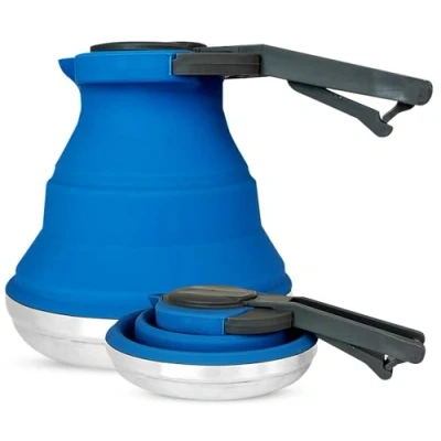 Heather Collapsible Camping Kettle 1.5L Silicone and Stainless Steel Stove Top Kettle, Folding for Boiling Water. Portable Gas Camp Caravan 6 Cup Capacity (Blue)