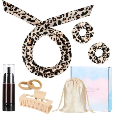 Heatless Curlers Headband, Soft Velour Curls, Overnight Hair Curling Set, No Heat for Short & Long (Leopard, 7Pcs)