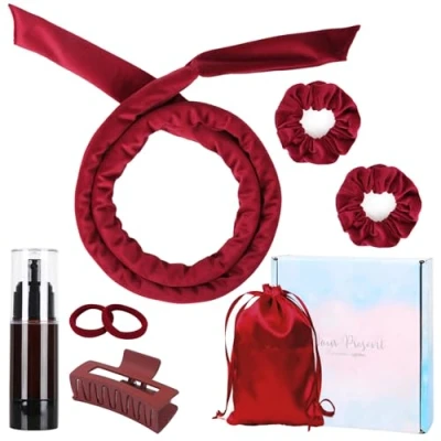 Heatless Curlers Headband, Velour Curls, Soft and Comfortable Hair Curlers, No Heat for Short & Long (Wine, 7Pcs)