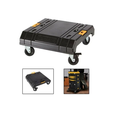 General description The Dewalt DWST1-71229 Tstak Compact Cart Carrier Trolley is an essential tool for trade professionals, designed to provide a flexible and organized storage solution. With a robust interlocking system, this trolley allows you to configure your storage according to your specific needs, ensuring that everything you require for the job is easily accessible and secure. Technical specifications Maximum Load: 100kg Product Dimensions: H181 x W486 x D436mm Weight: 1kg Material: Polypropylene Overall Height: 181mm Overall Width: 486mm Overall Depth: 436mm Part Number: DWST1-71229 Series: TSTAK Type: Mobile Storage System Compatibility and accessories Compatible with other TSTAK products for stacking and interlocking Tool case foam available separately for customized tool protection Padlock eyes for added security (padlock sold separately) Not compatible with Tough System Cases Installation Quick and easy to fit onto the base of any units in the TSTAK range Usage Ideal for
