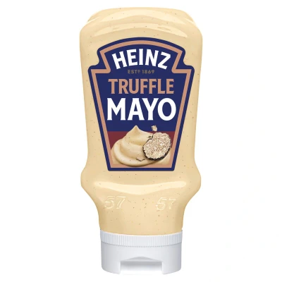 Heinz Truffle Mayo 400ml is a luxuriously creamy mayonnaise made with 100% free range eggs and real summer truffles, perfect for adding gourmet flavour to fries, sandwiches, burgers, or as a dip. It's lactose free, gluten free, suitable for vegetarians, and contains no artificial colours or thickeners.