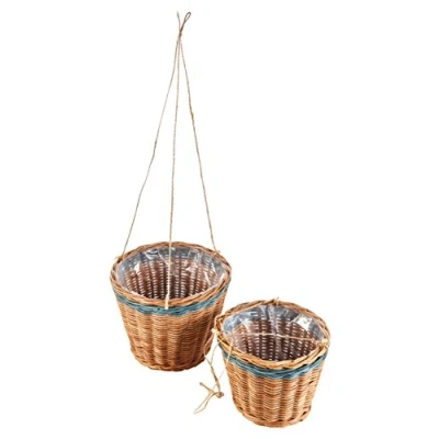 Heitmann DECO Rattan Hanging Basket, Pack of 2, Natural/Blue, 18 x 7 cm 2 Units