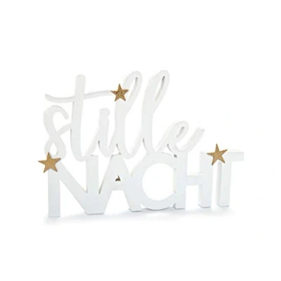 Design: the decorative wooden lettering "Frohes Fest" is made of white lacquered wood. Three gold, glittering stars give the lettering its Christmas shine and make the stand a real eye-catcher in your home. Occasion: Tune your living area to the Advent and Christmas season. The lettering is a highlight in your beautiful pre-Christmas decoration and sets a great accent with the modern colour design in the cold winter time. Festive: wish your loved one a Merry Christmas with the lettering, place the decorative item in the entrance area, so your guests will be immediately put into the Christmas mood. No matter what place: whether as an eye-catcher on the windowsill, on the sideboard or the chest of drawers, the lettering can be perfectly decorated anywhere. Also as a table decoration for Advent coffee with family and friends, the letters are a great eye-catcher. There for you: Brauns-Heitmann as a company is at home in Germany - since 1971 we have been offering you a wide range of seasonal decorative accessories for your home.