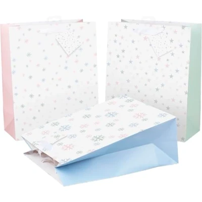 WINTER PASTEL TONES: With three different winter pastel designs, these bags bring a festive and stylish touch to any gift giveaway. Glitter finish: the glitter finish on the motifs gives the Christmas gift bags a sparkling and luxurious look, which is particularly appealing and festive. HIGH QUALITY PAPER: Made of high quality paper, these XL Christmas bags provide sturdy and attractive packaging for gifts. They can be reused or recycled, making them an environmentally friendly option. XL size: with the dimensions of 33 x 26 x 13 cm, these XL gift bags Christmas offer more space for larger gifts or several smaller items. This makes it a versatile and practical packaging option. Each bag comes with a small folding card that can be used for personal messages. Practical set: with 24 pieces per pack, this set is a practical choice for anyone who needs to wrap multiple gifts. Whether you use them for a Christmas party, corporate event, or simply for your personal Christmas gifts, these gift bags will surely add excitement.