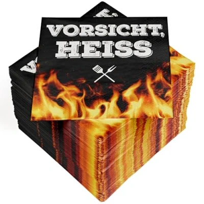 100 3 ply napkins Motif: Caution Hot 33 x 33 cm (unfolded) Practical packaging: 5 packs of 20 napkins Made in Europe