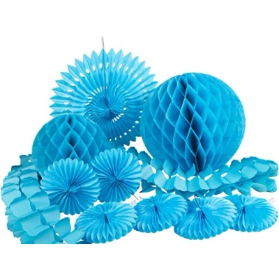 The perfect decoration for your party! Consisting of: 1 garland (3,6m) 2 honeycomb balls 6 small decorative compartments 1 large decorative fan