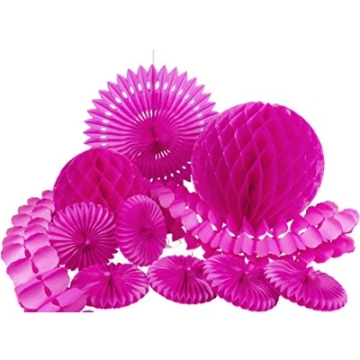 The perfect decoration for your party! Consisting of: 1 garland (3,6m) 2 honeycomb balls 6 small decorative compartments 1 large decorative fan