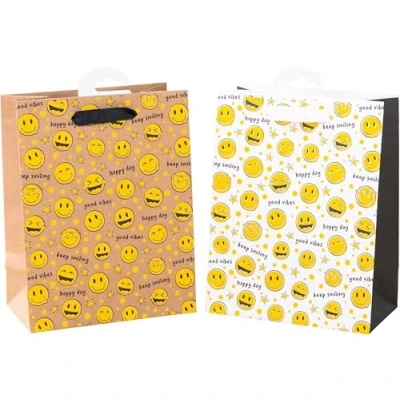 HEKU Premium Gift Bags "Smile", Pack of 4, 23 x 18 10 cm, Exclusive Foam Flake Finish, Versatile, Environmentally Friendly and Reusable