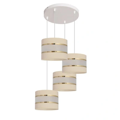 Ubiquitous with chic style the Helen Brown, Gold and Black 35cm 4-Light Cluster Pendant Ceiling Fixture with Round Shades has elegance to spare. Perfect for diffuse light in any room this lovely fixture has contemporary striped shades and minimalist attitude to add a touch of glamour to a decorating style.