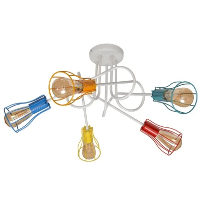 Add the unexpected to your lighting scheme with the Oxford 64cm Colourful 5-Light Multi Arm Semi Flush Fixture. It has a gracefully curved shape and industrial-inspired wire cage frames for interest. Just add your own decorative bulbs for a unique look on this eye-catching fixture that is perfect for warm overhead light.