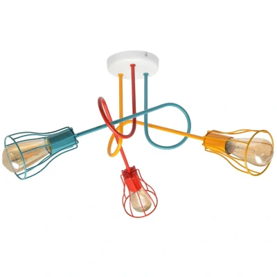 Add the unexpected to your lighting scheme with the Oxford 56cm White, Orange, Red and Turquoise 3-Light Multi Arm Semi Flush Fixture. It has a gracefully curved shape and industrial-style wire cage shades for interest. Just add your own decorative bulbs for a unique look on this eye-catching fixture that is perfect for warm overhead light.