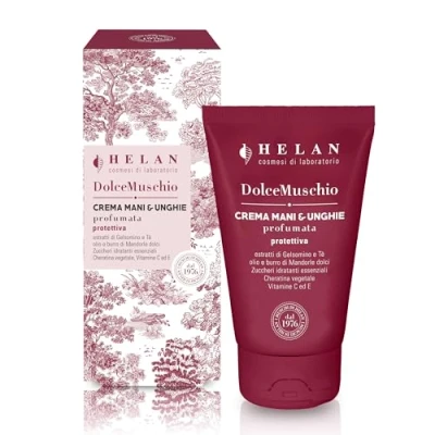 REPAIRING AND PROTECTIVE ACTION AGAINST EXTERNAL AGENTS WITH A LIGHT, QUICKLY ABSORBED TEXTURE, NON-GREASING: Soothing Jasmine and Tea Leaf Extracts hydrate dry and dehydrated skin, while Vitamins C and E perform an antioxidant action against free radicals. Used regularly, it prevents redness and cracking, while Plant Keratin is ideal for strengthening and revitalizing nails. DELICATE FORMULA 96% OF NATURAL ORIGIN SUITABLE FOR SENSITIVE SKIN: With an orthodermic pH and rapid absorption, it deeply nourishes the most delicate skin, thanks to the essential hydrating sugars, oil and Sweet Almond butter with a highly nourishing action that renormalise the functions of the skin barrier. PROTECT AND REPAIR THE SKIN IN DEEP THANKS TO THE ACTIVE INGREDIENTS OF THE DOLCE MUSCHIO LINE: Emollient and nourishing formulas with Sweet Almond Oil and Butter, Jasmine extract for a toning action, conditioning Sweet Almond proteins, Vegetable Keratin, Phytokeratin from Hemp and Rice that protect, repair and strengthen the nails HELAN'S MOSSES, ANTIOXIDANT AND MOISTURIZING LINES FOR YOUR WELL-BEING: Timeless iconic fantasy, made up of beauty products with antioxidant, anti-free radical and nourishing active ingredients such as Tea Extract, Vitamins C and E, essential hydrating and silky sugars HELAN LOVES PEOPLE AND NATURE: The company's mission has been, from the very beginning, to formulate and produce cosmetics designed and created in harmony with skin physiology, nature, the environment and the animal world.