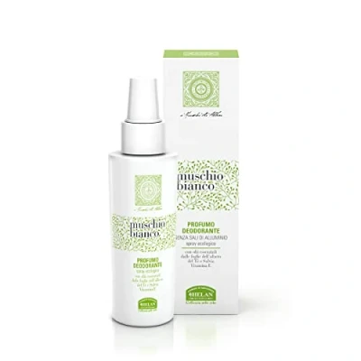 Helan Muschio Bianco, Women's Perfume Deodorant Spray, with Anti Odour Formula, Dermopurifying and Antioxidant Action Vitamin E Essential Oils of Tea Sage, 100 ml, Made in Italy