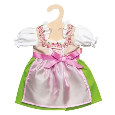 Pretty doll dirndl with blouse insert, elaborate ruffle sleeves, elegant shiny satin apron with attached bow and ruffle neckline with floral border. The item is delivered on a wooden hanger Thanks to the Velcro fastener in the back, the dress is very easy to put on and take off, which gives children a lot of fun while playing This outfit fits dolls measuring 28 - 35 cm As a traditional company, Heless pays great attention to high quality and, of course, compliance with all legal safety requirements. Heless quality toys are developed with attention to design and detail. All products support creative role play and stimulate the play imagination. Playing with dolls promotes children's empathy and fine motor skills., Manufacturer: Heless