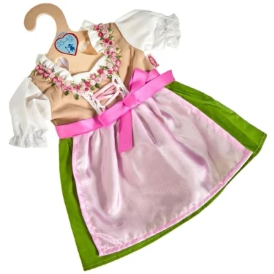 Pretty doll dirndl with blouse insert, elaborate ruffle sleeves, elegant shiny satin apron with attached bow and ruffle neckline with floral border. The garment is delivered on a wooden hanger Thanks to the Velcro fastener in the back, the dress is very easy to put on and take off, which gives children a lot of fun while playing This outfit fits dolls measuring 35 - 45 cm As a traditional company, Heless pays great attention to high quality and, of course, compliance with all legal safety requirements Heless quality toys are developed with attention to design and detail. All products support creative role play and stimulate the play imagination. Playing with dolls promotes children's empathy and fine motor skills, Manufacturer: Heless