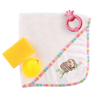 Accessory set for doll with bath towel and sloth fluffy motif Especially soft and cuddly material with high-quality embroidery With cute accessories (rattle, squeaky duck and sponge) for a varied bath game. Dimensions: approx. 48 x 48 cm, suitable for dolls size 38 - 45 cm. Heless quality toys – with love for design., Manufacturer: Heless