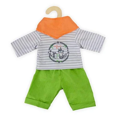 Pretty foxy dolls outfit Green trousers, trendy scarf and striped shirt with cute fox print Full Velcro fastening allows for easy on and off Suitable for a doll size from 38 to 45 cm Heless quality toys - with love for design, Manufacturer: Heless