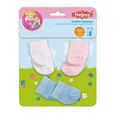 Available 3 pairs assorted in a pack Packed as self-service products Made in Germany Suitable for 28 to 35 cm size dolls Colours: pink, white and light blue Set contains 3 pair of socks for dolls, Manufacturer: Heless