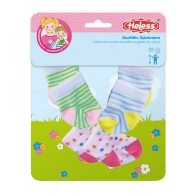 Set of 3 pairs of soft doll socks, in colourful patterns with stripes and dots The socks are easy to put on and take off thanks to the elastic material, which gives children a lot of joy when playing The garments fit baby, soft and rag dolls as well as cuddly toys of size 28 - 35 cm As a traditional company, Heless pays great attention to high quality and, of course, compliance with all legal safety requirements. Heless Quality toys are developed with attention to design and detail. All products support creative role play and stimulate game imagination. Playing with dolls promotes children's empathy and fine motor skills., Manufacturer: Heless