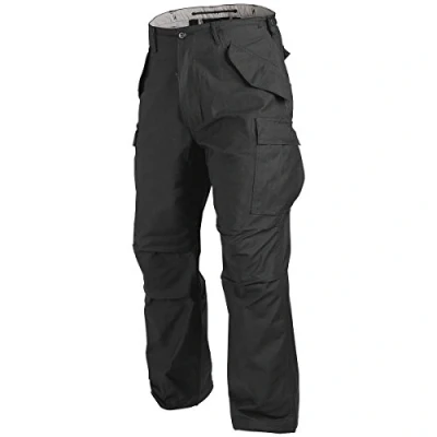 Waist circumference: XS: 27"-30" (68-75cm), S: 30"-33" (76-83cm), M: 33"-36" (84-91cm), L: 36"-39" (91-99cm), XL: 39"-42" (99-107cm), XXL: 42"-45" (107-114cm). Regular length: 32" (80cm), Long length: 34" (85cm) Genuine US Army M65 trousers style 6 pockets with flaps & press studs. 1 inner button-down pocket Button waist with zip fly. Belt loops. Buttons for liner. Side waist adjusters. Knee pleats Material: NyCo (50% Nylon, 50% Cotton). Wind resistant