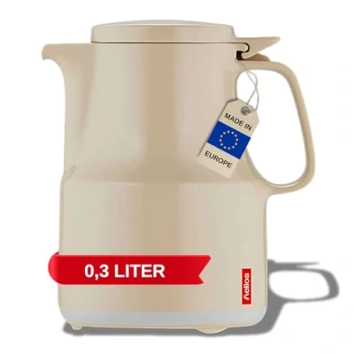 Robust Cover Made Of High-Gloss Hard Plastic With Hinged Lid. Ideal Jug For Tray Systems In The Hotel, Restaurant And Hospital Sector. Dishwasher-Safe Santoprene Seal At Up To 95°C Lid closes automatically Available in beige colour