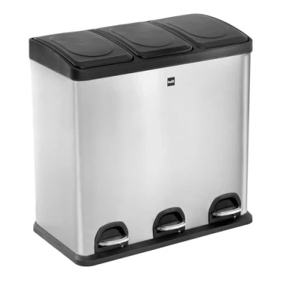 The large "the seperator" bin has 3 compartments, each with a capacity of 20 litres The waste bin with practical pedals is made of stainless steel and has an anti-fingerprint coating Thanks to the soft-close mechanism, the lid closes gently and quietly The inner plastic container has a handle that makes it easy to remove for cleaning or emptying The extension of the base under the pedal ensures the stability of the basket