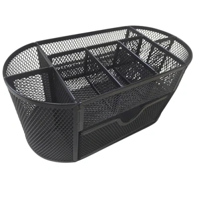 The table organiser is made of powder-coated mesh steel, known for its durability and robustness and adds a modern touch to your desk With 8 compartments and a practical drawer compartment, this organiser offers plenty of space for pens, notes, paper clips and other office supplies The office organiser helps to keep your workplace tidy and clear, which ensures a pleasant working atmosphere The stylish and minimalist design of the desk organiser blends seamlessly into any office or home office and ensures a professional working environment With a structured storage of work utensils, this tabletop organizer supports an efficient way of working and maximizes your workspace