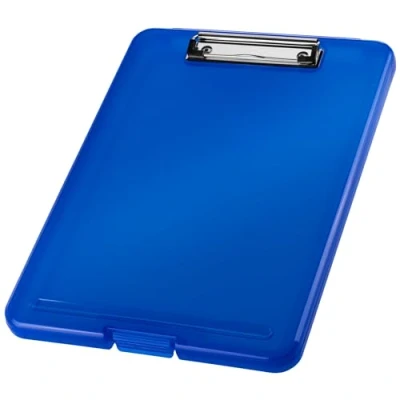 The blue clipboard is in DIN A4 portrait format The inner compartment for documents and pens is wind and water resistant With the robust clamp and high-quality material, it promises stability and is ideal for important notes The clip folder can be used in many ways, for example as a desk mat, presentation aid or for storing documents With its clever design, you can easily unfold the clipboard, put your sheets in and close securely