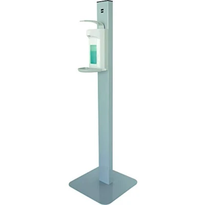 Steel frame for disinfectant dispenser, made in Germany. Help to provide optimal protection against germs and bacteria, operating height 1180 mm. Ideal for high traffic reception areas, with plastic dispenser (includes 1000 ml empty bottle). Includes mounting material and assembly instructions (English language Rubber feet ensure non-slip properties on smooth surfaces.