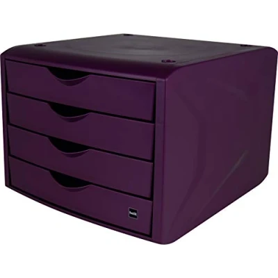 Drawer box with four drawers for DIN A4 formats Internal dimensions of the drawers width/depth/height 229 x 306 x 38 mm (DIN A4 longitudinal) Drawers with pull-out lock Made from recycled plastic, at least 80% post-consumer material Blue Angel certified