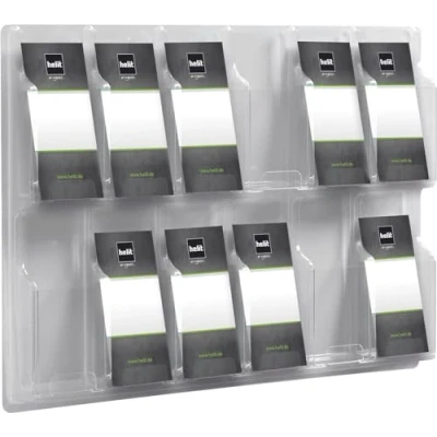 Organise and display catalogues, magazines, leaflets and literature Clear, highly break-resistant acrylic plastic Each pocket holds up to 48mm of material Predrilled for wall mounting Screws and anchors included