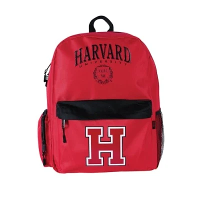 Large multi-compartment backpack featuring iconic Harvard branding. Two convenient side pockets: a mesh water bottle pocket with easy access, and a zip closure pocket ideal for pens, keys, or phone Padded and ventilated back panel, and adjustable padded shoulder straps for comfortable use Other features include padded internal pocket to protect laptops and tablets, accessible front pocket with zip closure, convenient grab handle, and rubber zip toggles for easy opening Approximately 26.5 litres, dimensions: 35 x 45 x 17cm (WxHxD) Made from recycled polyester with durable PVC coating to protect the inside of the bag from spills and leaks. Wipe clean finish.
