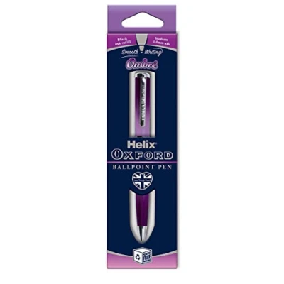 AmazonHelixOxford Premium ballpoint pen in attractive pink ombre design Balanced metal barrel that is comfortable to hold Smooth writing with consistent ink flow Black ink Pink ombre colour barrel with silver effect fittings Form factor: Retractable