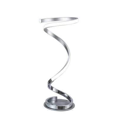 The Helix Table Lamp features a polished chrome finish and integrated LED lighting, perfect for a modern office or living space. Its sleek design adds a contemporary touch while providing functional lighting needs.