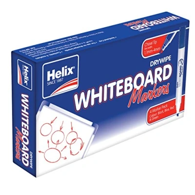 Helix Whiteboard Dry Wipe Marker Pens Chisel Tip x4 (Assorted)