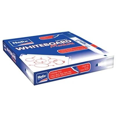 Helix Whiteboard Dry Wipe Marker Pens Chisel Tip x4 (Assorted) (Pack of 2)