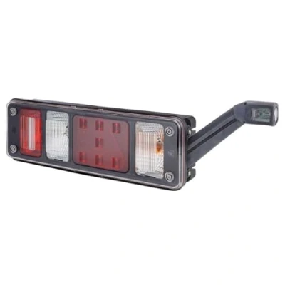 Taillight / stoplight in LED Patented replaceable lens (lamp independent) Modularity of light sources and housing parts ("building block principle") Incorrect contact ensures that the luminaire is not damaged Thanks to HELLA's patented flasher monitoring system, this luminaire can be used in accordance with ECE-R48 requirements Length: 450mm - Width: 138mm - Height: 94mm - Lamp Type: LED/P21W/PY21W - Number of LEDs: 7 - with bulbs/without indicator failure control/Electromagnetic Compatibility (EMC)/for trailer/with plug Light functions: 6 - with rear fog light/with reflector/with marker lamp (LED)/with stop light (LED)/with indicator/with reverse light/with side marker light (LED)/with taillight (LED)