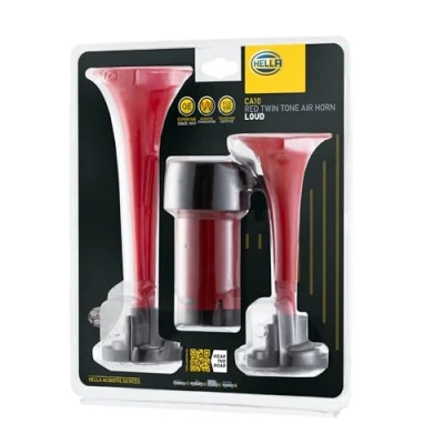 HELLA 3PB 003 001 641 Trumpet Horn CA10 24V 115dB(A) 600Hz 756Hz High Tone/Low Tone Electric pneumatic ECE Housing Colour: Red/Black Quantity: 1