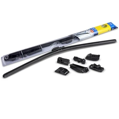 HELLA Cleantech flat bar wiper blade hingeless with multi-adapter for the windscreen Easy to install thanks to Easy Change System Streak-free and noiseless wiping due to graphite coating OEM quality and a very good price-performance ratio Uniform pressure distribution due to pre-bent spring rail and at the same time high contact pressure even at high speeds due to aerodynamic design