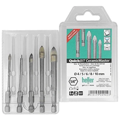 for rotary drilling in glass and soft ceramic materials pointed centring cutting edge which can be sharpened at any time allows for precise drilling heller quickbit system: perfectly designed for use with cordless machines fastest switching between drills and bits "1/4"" hexagonal shank prevents the drill bit from slipping into the drill chuck", Weight: 0.22 pounds, Manufacturer: Heller Tools