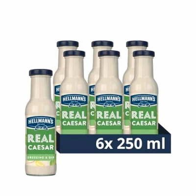 Hellmann's Real Caesar Salad Dressing & Dip vegetarian condiment free from artificial colours and flavours for salads, sandwiches, burgers dips 6x 250 ml