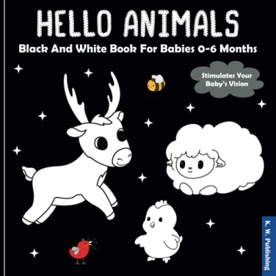 Hello Animals Black And White Book For Babies 0 6 Months: Developing Baby High Contrast Toy Newborns / My First Sensory Pictures To Visual Stimulation