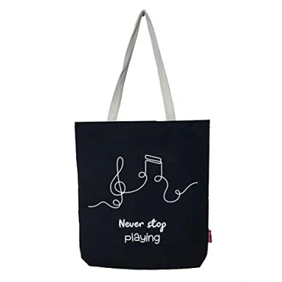 hello bags. Canvas Tote Bag. Exterior: 100% Cotton. Includes zipper, lining and inside pocket. Packed in a gift kraft envelope. Model: “NEVERSTOP. Color: Black. Measurements: 37 * 38 cm.