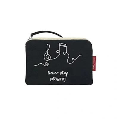 hello bags. Coin Purse/Small Pouch. Exterior: 100% Cotton. Includes Zipper and Lining. Packed in a Gift Kraft Envelope. Model: “NEVERSTOP. Color: Black. Measurements: 14 * 10 cm.
