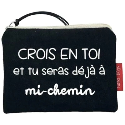 TAKE IT EVERYWHERE: Made of durable cotton, this bag is lightweight and practical. Available in black and raw, you won't find it easy to choose from all the phrases, drawings and initials available! THE RIGHT MEASURE: This Hello-Bags measures 14 cm (width) by 10 cm (high). Ideal as a purse. You can take your cash, credit cards, small cosmetics, small jewelry and feminine hygiene products, among others. THE IDEAL GIFT: Packed in a nice kraft envelope, this bag will draw a smile wherever you give it. ETHICAL MANUFACTURING: The Hello-Bags factory is audited by BSCI. This ensures, among other things: not child labour, non-discrimination, fair remuneration, fair working time, safety at work and environmental protection. LINING: Includes a practical polyester lining.