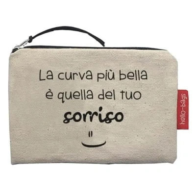 TAKE IT EVERYWHERE: Made of durable cotton, this bag is lightweight and practical. Available in black and raw, you won't find it easy to choose from all the phrases, drawings and initials available! THE RIGHT MEASURE: This Hello-Bags measures 14 cm (width) by 10 cm (high). Ideal as a purse. You can take your cash, credit cards, small cosmetics, small jewelry and feminine hygiene products, among others. THE IDEAL GIFT: Packed in a nice kraft envelope, this bag will draw a smile wherever you give it. ETHICAL MANUFACTURING: The Hello-Bags factory is audited by BSCI. This ensures, among other things: not child labour, non-discrimination, fair remuneration, fair working time, safety at work and environmental protection. LINING: Includes a practical polyester lining.