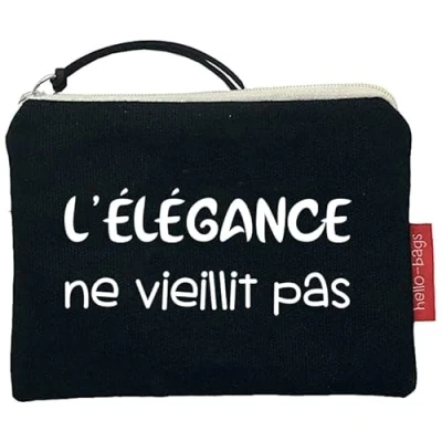 TAKE IT EVERYWHERE: Made of durable cotton, this bag is lightweight and practical. Available in black and raw, you won't find it easy to choose from all the phrases, drawings and initials available! THE RIGHT MEASURE: This Hello-Bags measures 14 cm (width) by 10 cm (high). Ideal as a purse. You can take your cash, credit cards, small cosmetics, small jewelry and feminine hygiene products, among others. THE IDEAL GIFT: Packed in a nice kraft envelope, this bag will draw a smile wherever you give it. ETHICAL MANUFACTURING: The Hello-Bags factory is audited by BSCI. This ensures, among other things: not child labour, non-discrimination, fair remuneration, fair working time, safety at work and environmental protection. LINING: Includes a practical polyester lining.